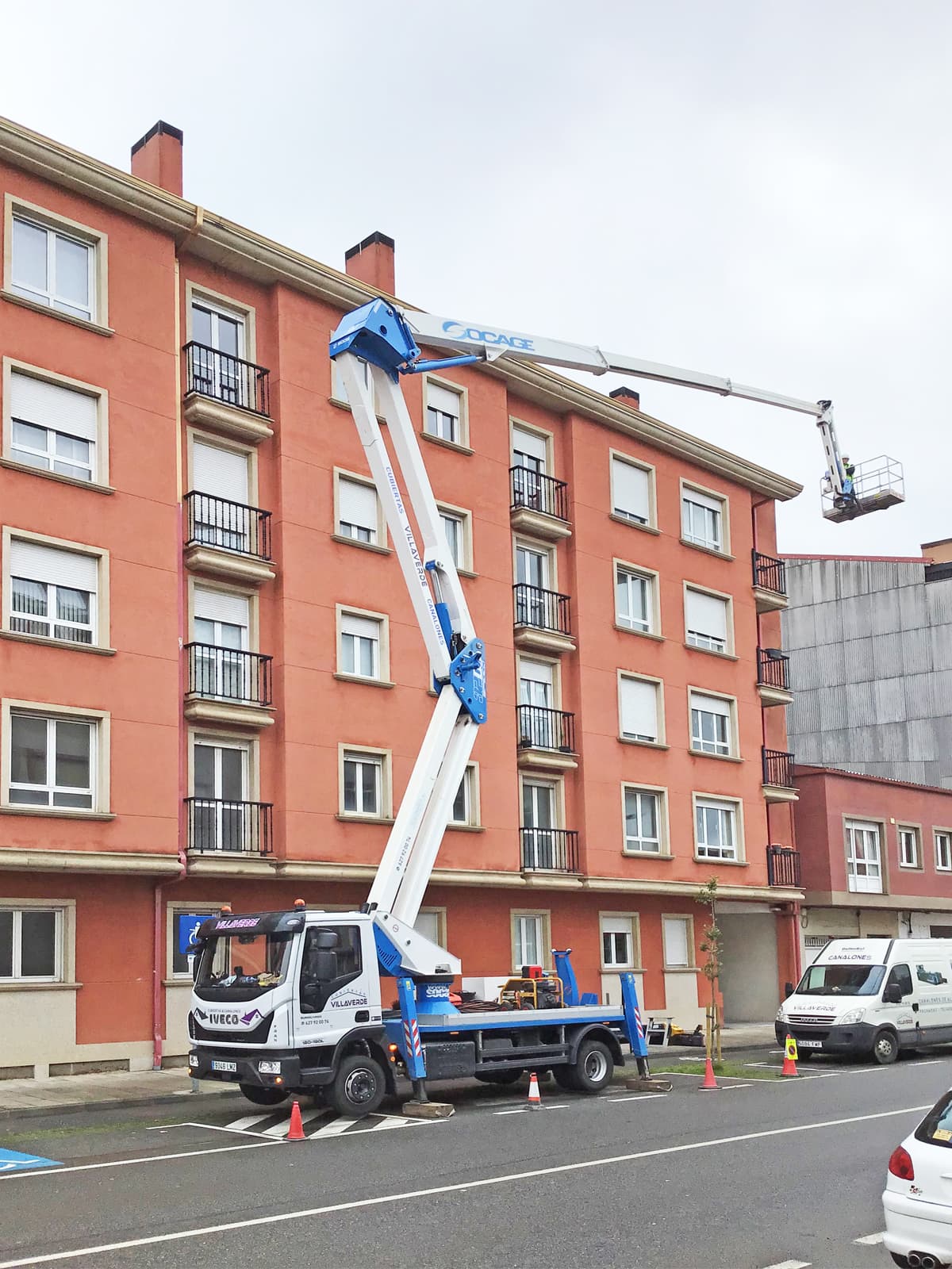 A pesar de que el propio equipo de Villaverde nos encargamos de desempeñar los trabajos anteriormente citados desde nuestra empresa, también ofrecemos la opción del alquiler. Nuestra plataforma elevadora sobre camión cuenta con una altura de 32 metros y alcance lateral de 19 metros.